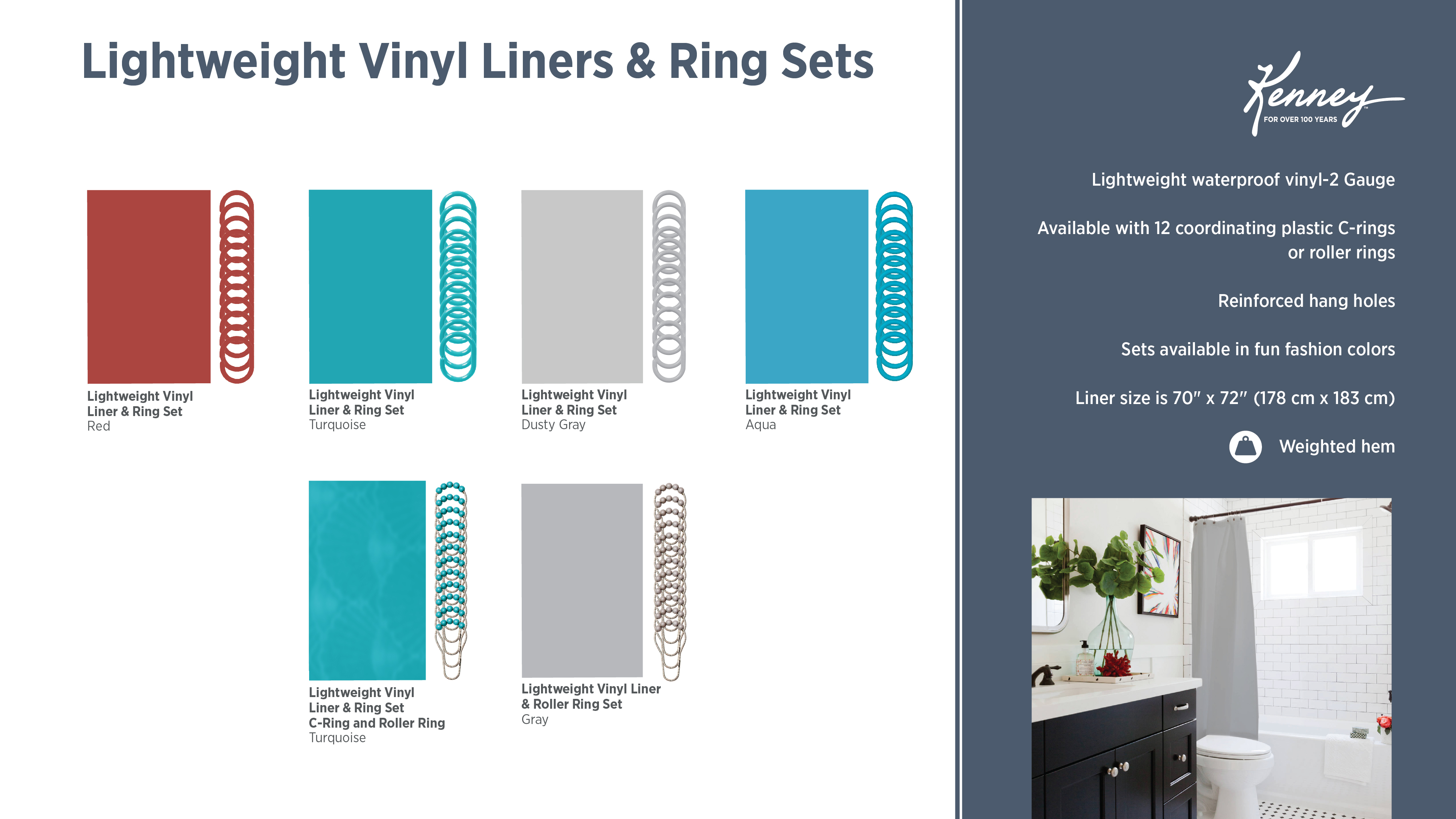 PEVA Shower Liners & Roller Ring Sets
