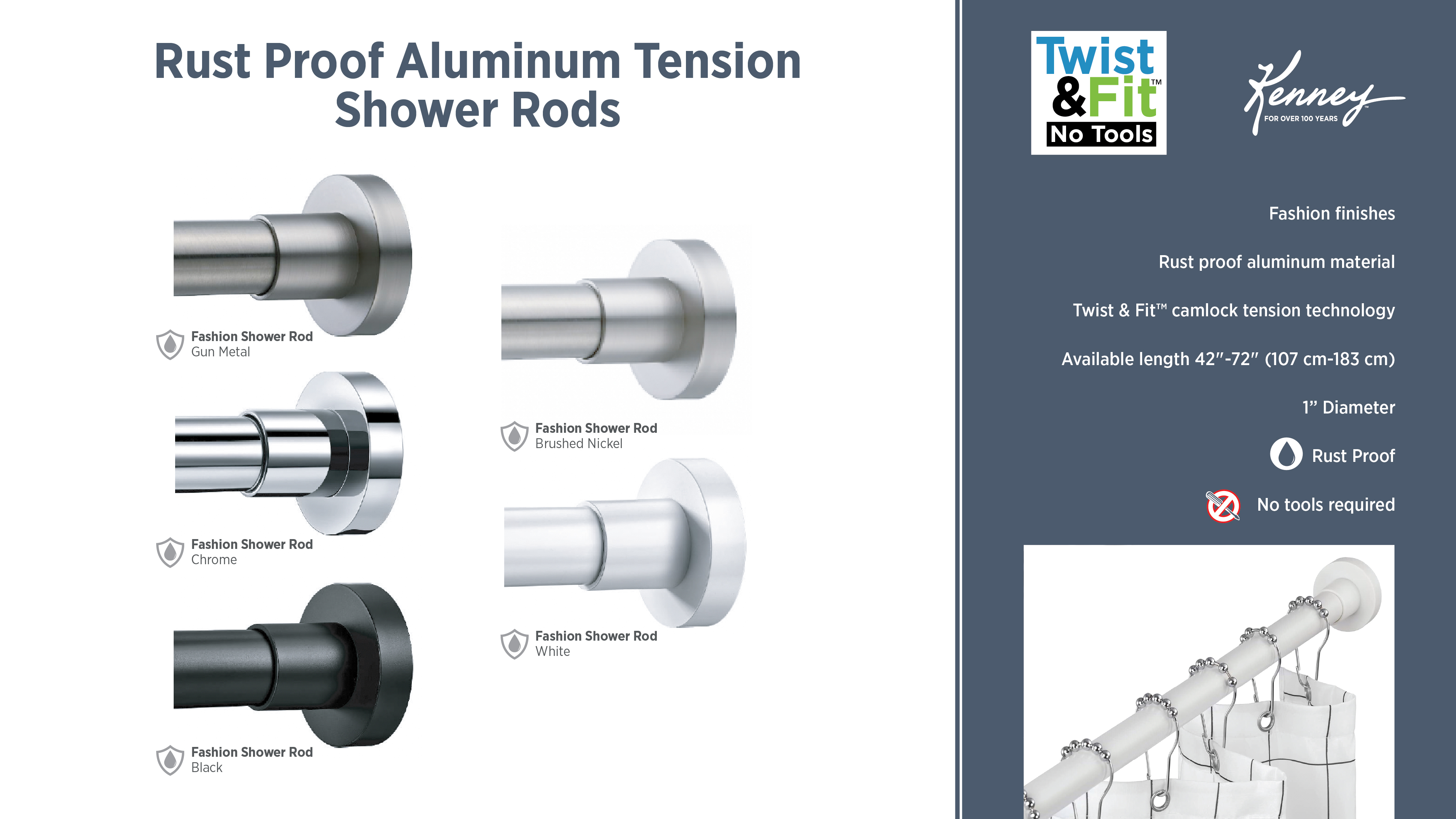 No Tools Curved Shower Rods