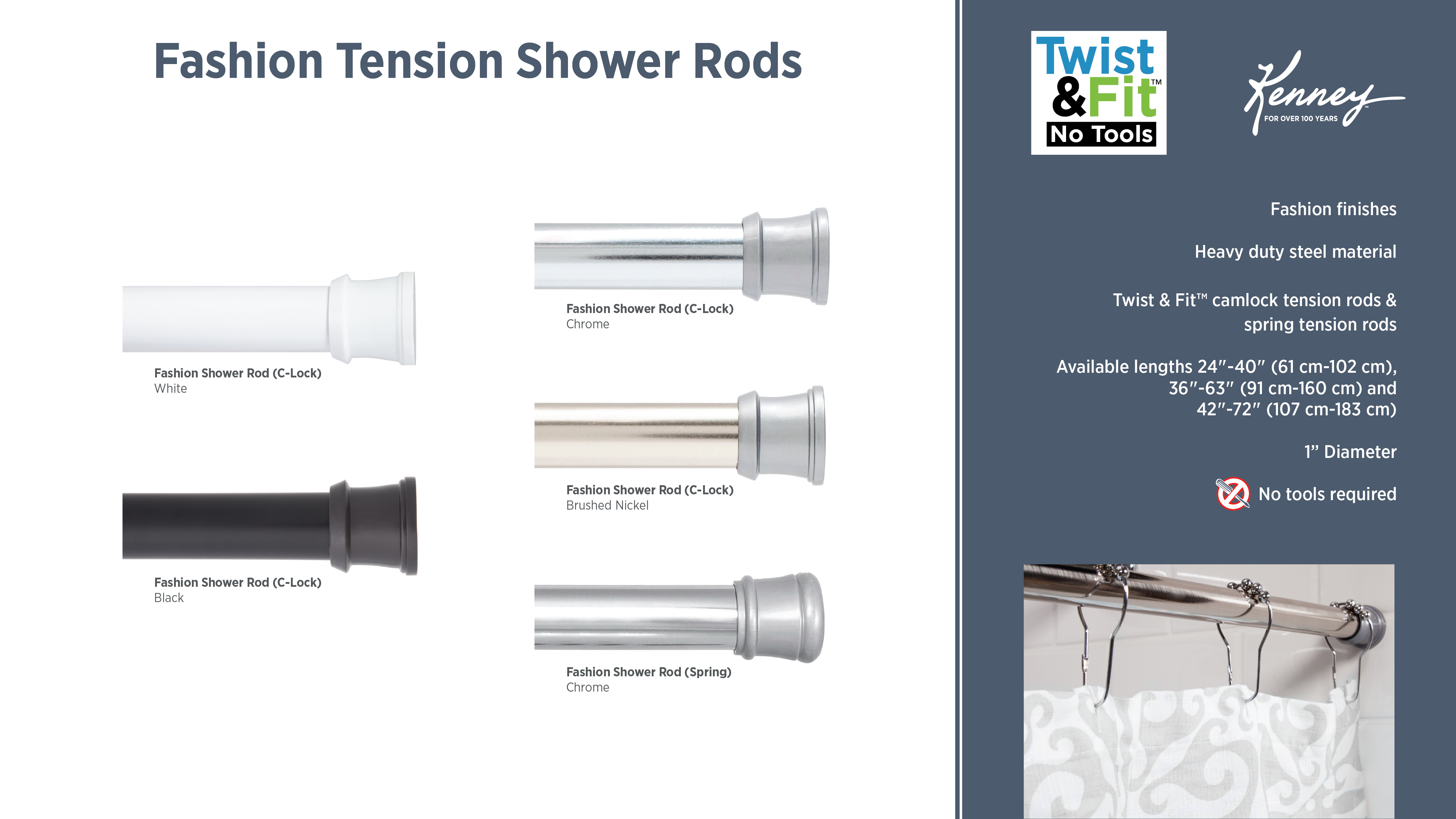 No Tools Curved Shower Rods
